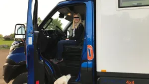 (Auf dem Bild mit der Frau des Hauses, kann man auch mal gut die enorme Sitzhöhe des Daily erkennen)