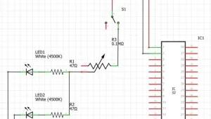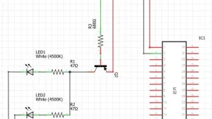 Man nimmt die beiden im foto markierten 470ohm smd widerstände raus. Dann jeweils an der widerstandsseite der LEDs ein kabel anlöten, das dann an je einen kontakt des schalters gelötet wird. Die zwei neuen 470ohm widerstände auf die jeweils andere seite des schalters und mit der 5v versorgung verbinden. Den schalter im gehäuse des bedienelements oder wo immer er sich gut macht unterbringen.