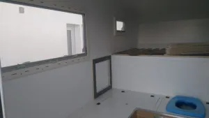 So, die Schränke sind soweit durch, bis auf ein paar kleine Einlegeböden. Heute kam auch das große Fenster über der Sitzbank. Damit sind wir fenstertechnisch durch.