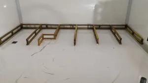 Die Aufhängung für die Oberschränke fertig gestellt und verklebt.