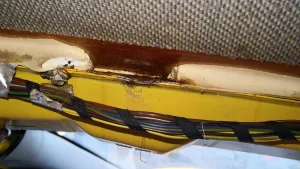 Meine größte Sorge ist das Thema Korrosion. Wir sind auf die Feuchtigkeit im Spoiler erst aufmerksam geworden, als uns ein Schluck rostbraunes Wasser aus der Verkleidung schwappte. Kögel war so clever, den Spoiler innen nicht durchgängig abzudichten, sondern "Taschen" zu lassen, in denen z.B. die Antenne verschraubt wurde. Dort hat sich das Wasser gesammelt und dazu geführt, dass die Antenne abgerostet ist... die Hohlräume an sich sehen aber noch top aus. Mit den beiden Ausnahmen die ich Anfangs erwähnt habe. das wird nun mit Owatrol, Fluidfilm und Mike Sanders konserviert.