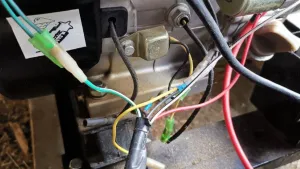 Ölniveauschalter. Schaltet bei zu wenig Öl, oder wenn der Generator schief steht, Masse auf die Zündspule und verhindert so ein Starten oder stellt ihn ab wenn er läuft. Ol ist genug drin und er steht gerade, trotzdem spricht der Ölsensor an.