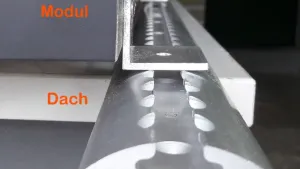 Ich kapere mal das Thema: Ich hoffe ihr steinigt mich jetzt nicht, aber hatte schonmal jemand die Idee die Module direkt am Rahmen aufzukleben? Ich habe ja ein Problem mit der Gesamthöhe und versuch deshalb jeden cm an zusätzlicher Höhe zu vermeiden. Der umlaufende Rahmen der Module hat meistens eine Auflagefläche von 30 mm. Ich denke da an 3-5 mm Klebenahtdicke, damit die Ausdehnung kompensiert werden kann.