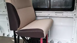 Er hat mit dem Einbau von Sitzen hinten begonnen. Hier unten ein Bild dazu.
