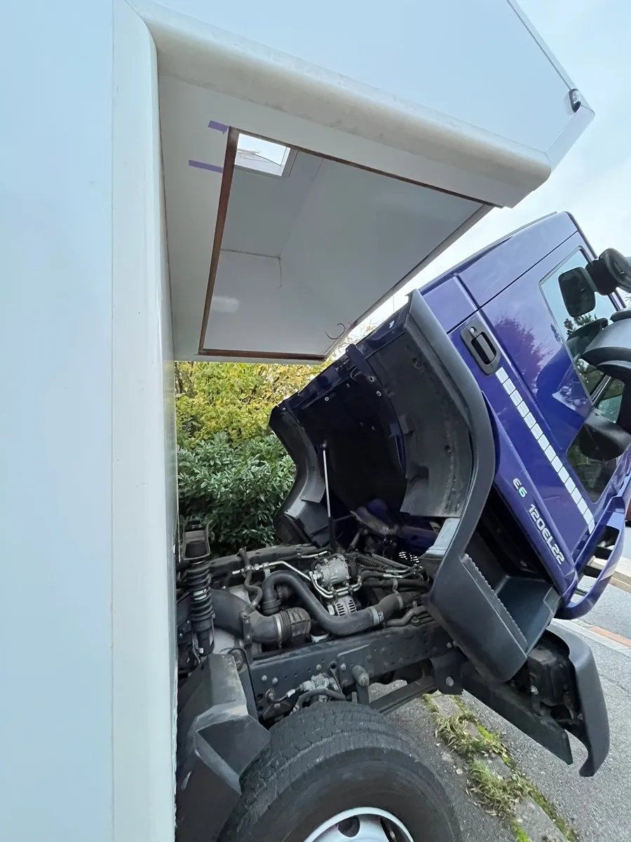 Die 2. grosse Frage am Anfang betrifft das Fahrerhaus. Obwohl alle grossen Hersteller bei Alkoven Modellen die Kabine fest montieren und es keine Möglichkeiten mehr gibt diese nach vorne zu kippen, habe ich ein sehr schlechtes Gefühl dabei. Was wenn der Motor Probleme macht? Frontachse raus und von unten an den Motor? bei einer Kleinigkeit? Hier stelle ich mir die Frage, ob ich kein System finde, den Alkoven so zu bauen, dass der Boden abmontiert werden kann, unter den Lattenrosten, und das Fahrerhaus dann zwischen den Seitenwänden des Alkoven doch gekippt werden kann. Das Fahrerhaus ist ja schmaler als die 2m50 die der Aufbau haben soll.
