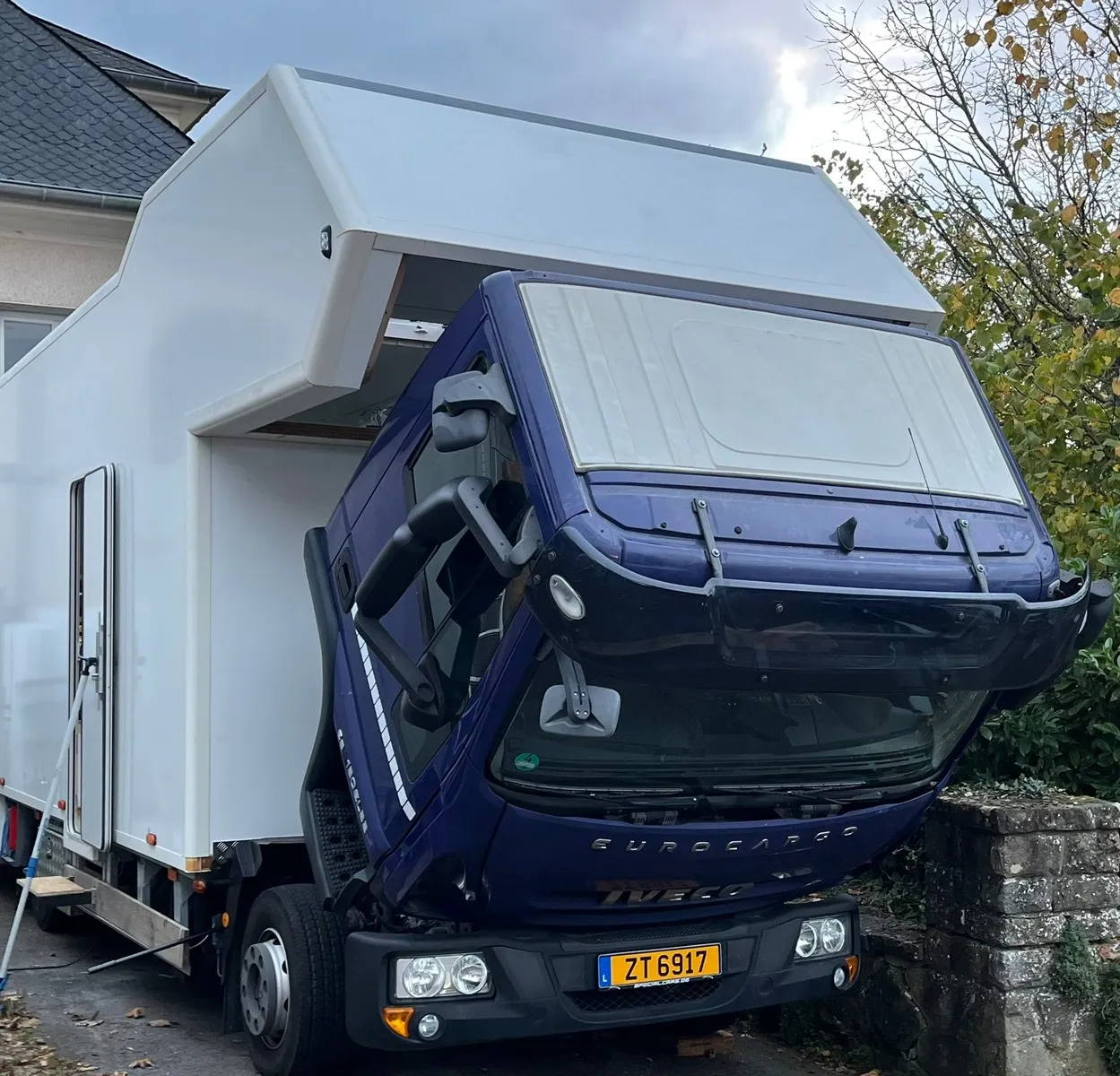 Ich habe meinen Iveco am Montag in Frankfurt abgeholt und nach Luxemburg überführt . Jetzt kann die genau Planung für die Heckabsenkung beginnen, am Montag habe ich einen Termin bei einem lokalen Karrosseriebauer, der mir auch mit dem Tüv helfen wird.