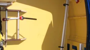 Ich mag ganz explizit außen meine Fahrräder nicht an das Auto hängen. Der Bus ist mein Alltagsfahrzeug und ich hab die Räder immer dabei. Das Liegerad hat über das doppelte als mein erster Bus gekostet und sowas fährt man nicht gerne am Fahrradständer spazieren, insbesondere wenn der Bus auch mal zwei Wochen in der Stadt am Straßenrand parkt. Ich hab zu Hause auch keinen Fahrradkeller oder ähnliches, der Bus ist meine einzige Möglichkeit das Ding sicher zu verstauen. Man kann ja auch nicht reingucken und mir ist deshalb ja auch ein nicht zu wertiger Außeneindruck wichtig. Drum pfusch ich ganz gezielt, wenn ich mal Lack oder Klebearbeiten im Außenbereich mache. Nur keine Neugier wecken