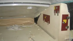 Stauraum in der Kabine für Ski oder AngelgerätschaftNatürlich standen noch viele Kleinigkeiten an welche unbedingt enthalten / umgesetzt werden mussten / sollten. Im Laufe der Planung habe ich alles zigmall über den Haufen geschmissen. Nachdem die Gerätschaften (Boiler, Kühlschrank etc.) gekauft waren, kam es dann nochmals zu gravierenden Umplanungen. Das Treffen in Bodenheim die Kontakte mit den ``Wissenden´´ hier im Forum und letztendlich auch das Forum selbst erforderte es das Projekt des Öfteren umzuwerfen. Ein herzlichen Dank allen noch mal, die Ihren Senf dazu beigetragen haben und hoffentlich auch in Zukunft werden. Special Thanks to Krabbbe…..weltbester kompetenter Fragenbeantworter ab 23.00Uhr….und natürlich auch vorher.