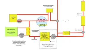 Wasser kann immer fließen und man kann über die beiden zusätzlichen Pumpen alle Kreisläufe einzeln schalten.