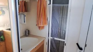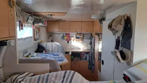 3 Sitzplätze, Tisch absenkbar für 3. Bett nach Umbau)
