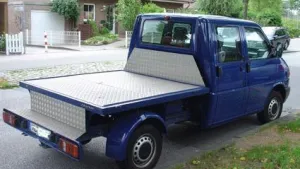 dann umgebaut auf VW T4 dh. die Pritsche vom T4 wurde verändert und somit kann jede T3 Doka Tischer- Kabine ohne Umbau aufgesetzt werden ,festgemacht und losgefahren werden !