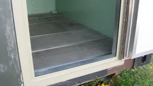 Die Hecktüre und alle Klappen sind abgebaut und mit Alublech