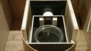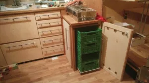 Ich habe es nun doch so gemacht das ich den Feststoffbehälter gekapselt habe... ...bzw. dies tun kann wenn es sein muss. Ist eigentlich nix anderes als ein kleinerer Behälter (Eimer) im grösseren Behälter. Der grössere kann mit einem Deckel geschlossen werden und hat ein Loch im Boden für Zuluft sowie das Abzugsloch mit Lüfter im Rücken.