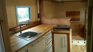 Aber dieses mal habe ich es endlich so weit geschafft das die Inneneinrichtung im Grunde genommen fertig ist. Es fehlt noch an Abdeckleisten, Abschlussprofilen, Kleinigkeiten,... Elektroinstallation ist im Grunde alles fertig verlegt, Akkus, Solar und sonstige Technik wird dann im Herbst umgesattelt, kurz bevor wir dann gedenken einzuziehen.