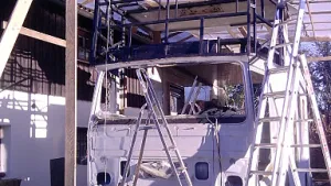 der Kabelschacht durch den wir nun die Heizungsschläuche legen wollen ist von der Garage bis zum Führerhaus in den Fussboden geschnitten und rundum völlig unisoliert. (Ehem. Übertragungswagen).