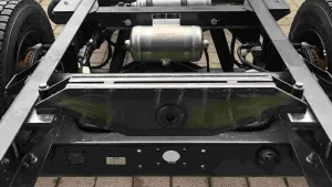 Die Rahmenhöhe beträgt beim leeren Fahgestell vorne am Fahrerhaus 82cm hinten 89cm