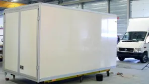 Trotz seines geringen Gewichtes garantiert die Wahl der Materialien und Komponenten hohe Stabilität und Langlebigkeit. Der gesamte Aufbau ist verrottungsfrei. Ein umlaufendes Aluminium- Dach/Seitenwandprofil erlaubt die Befestigung von Regalen und anderen Einrichtungen. Der ausgezeichnete K- Wert (0,64) erlaubt in Kombination mit einem Kühlsystem auch den Einsatz im Lebensmittel- Frischdienst.