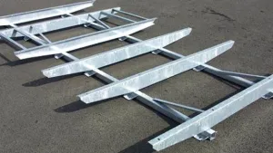 Sandwichplatten GfK/Schaum/GfK. Die Einfassung erfolgt mit Aluminiumprofilen.