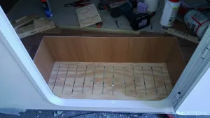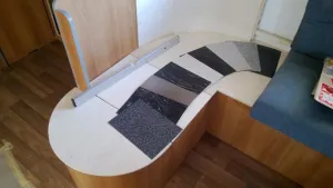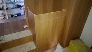 Schürze ist jetzt rundum fertig inkl. Fugen resp. Stösse laminieren. Auch die Unteren Ecken wurden einlaminiert.