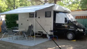 Türe stammt von Hymer und ist mit Fliegenschutztür.