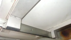 Habe mir beim Holzhandel meiner Wahl die Profile für die Türen und Klappen zuschneiden lassen. Wichtig dabei ist nur, dass die Leisten nicht in sich verbogen sind. Im Dachdeckereinkauf sind die Füllungen auf Maß aus Aluriffelblech zugeschnitten worden. Nun mit der Oberfräse die passenden Nuten gefräst und alles zusammen bauen. Zwei Löcher in die Klappe gefräst, Chromringe eingeschlagen und fertig ist die Klappe. Nicht zu vergessen sind die abgerundeten Kanten, damit bei Kopfkontackt es nicht so weh tut. Für die Oberschränke habe ich Klappscharniere von Hätal aus dem Küchenprogramm gewählt. Bei diesen Scharnieren bleiben die Klappen von selbst geschlossen und damit spart man sich die Türfeststeller. -