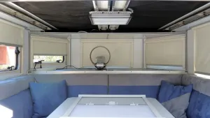 Ich kenne jetzt nicht die techn. Daten des anvisierten Fahrzeuges. Dennoch: Wenn ich auf der Skizze den mächtigen Überhang so sehe, komme ich auf die Idee der Überladung, besonders der evtl. Überschreitung der hinteren zul. Achslast. Vor Beginn eines solchen Projektes würde ich gründlich rechnen! Im Stillstand kommen vielleicht bis zu 4 Personen (ca. 300 kg) in die hintere Kabine rein. Auch statisch sollte man die Achse nicht überlasten. Im Fahrbetrieb macht sich eine große Masse hinter der Hinterachse auch fahrdynamisch unangenehm bemerkbar. Ich finde, da sollte man in Leichtbaustatik planen. -
