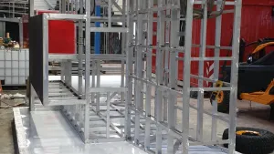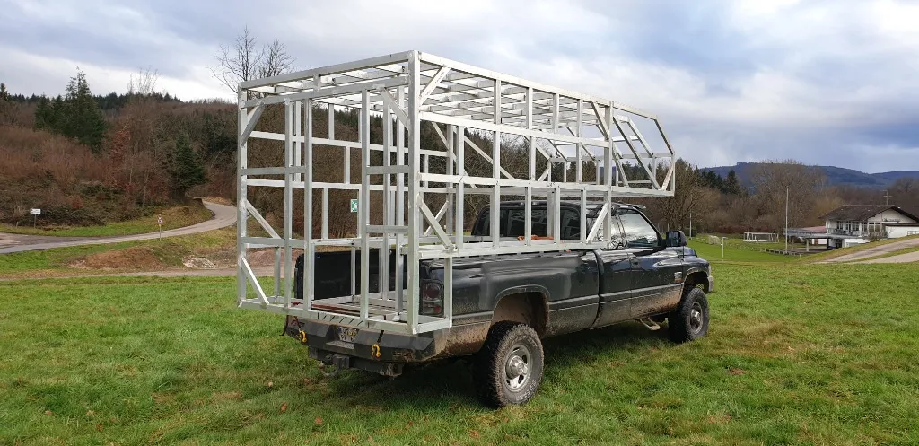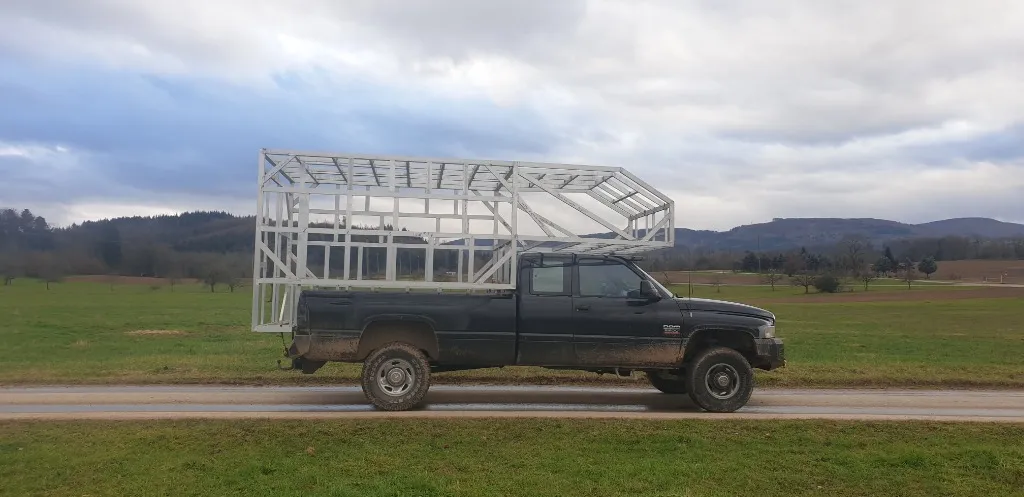 Wenn alles Alu verbaut ist was ich gekauft hab bin ich bei 265kg, komplett mit Nasszellenabtrennung und Oberschränken