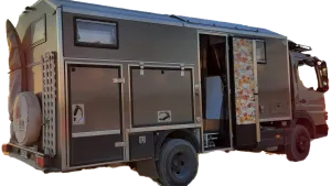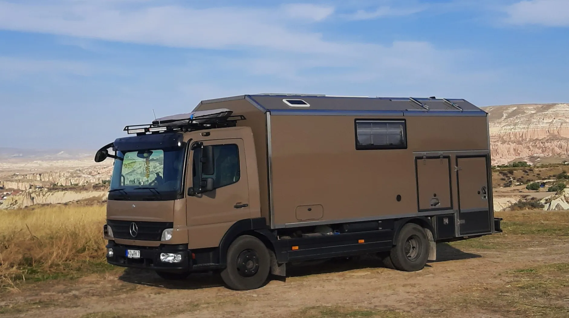 An der Seite sind wir 2,7m hoch und dann steigt es langsam auf 3,1m. Enge Durchfahrten und Waldwege verlieren ihren schrecken. Außerdem sieht er von vorne freundlicher aus.