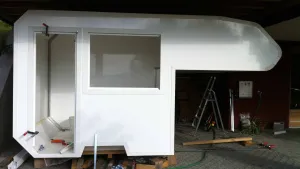 Ich würde den Rahmen austauschen und entweder eine Federlagerung oder eine Rautenlagerung umsetzen. Weiters würde ich mir die Verbindung von Zwischenrahmen und Bodenplatte überlegen. Kleben finde ich nicht gut, würde da nur Schrauben. Sollte am Zwischenahmen was zu schweißen sein, kann man zur Not die Kabine abnehmen ohne Gefahr zu laufen die Bodenplatte zu beschädigen. Ausserdem hätte ich Sorge, dass sich wie in deinem Fall das GFK vom Schaum löst. Bodenplatte ohne Multiplex Einlage ist natürlich auch suboptimal. Dämpfer im hinteren Bereich können zwar die extremen Schwankungen der Kabine ausgleichen aber der Fahrzeugrahmen wird sich weiter verdrehen (was er auch soll) und somit enorme Kräfte in die Längslagerung, den Zwischenrahmen und die Kabine weiterleiten, was langfristig unweigerlich zu Schäden führt.