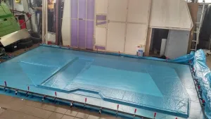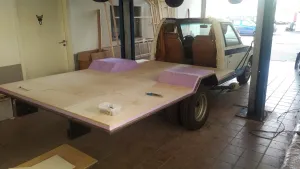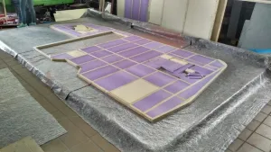 Aktuell haben wir die Bauteile auf unserem Nicky wieder aufgestellt und das Heck sowie den Alkoven eingepasst. Der Alkoven hat uns mit seinen verschiedenen Winkeln und der benötigten Steifigkeit etwas Kopfzerbrechen bereitet. Auch können wir diese beiden Bauteile nicht mit der Vakuumpresse verkleben, wir haben daher einige Probeklebungen vorgenommen und uns für den Soudal High Tack als Klebstoff entschieden. Dieser braucht laut Hersteller lediglich einen geringen Anpressdruck, um die benötigte Klebeverbindung herzustellen. Die verschiedenen Probeklebungen haben uns das auch bestätigt.