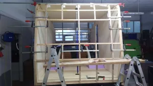 In den kommenden Wochen werden wir die restlichen Bauteile mit der Innenverkleidung verkleben und uns anschließend an die Aluminiumaußenhaut wagen.