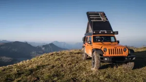Nachdem ich mir ein Jahr den Kopf zerbrochen habe, wie ich ein Aufstelldach komplett selbst bauen kann und vorallem wie ich die gesamte Anbindung an unseren Jeep Wrangler gestalte, der ja nur ein Hardtop hat, oder wie ich den Zeltstoff vernünftig angebunden bekomme, ist mir ein nahezu perfekt passendes AluCab-Dachzelt über den Weg gelaufen.