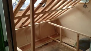 Ich habe den Alkoven von 1,20m auf 0,6m gekürzt. Der Kleine schläft jetzt oben und wir unten in einem Klappbett. Das bringt den Schwerpunkt nach unten und spart Gewicht. Und ich könnte vor der Kabine auf dem Dachträger noch was aufladen wenns nötig ware.