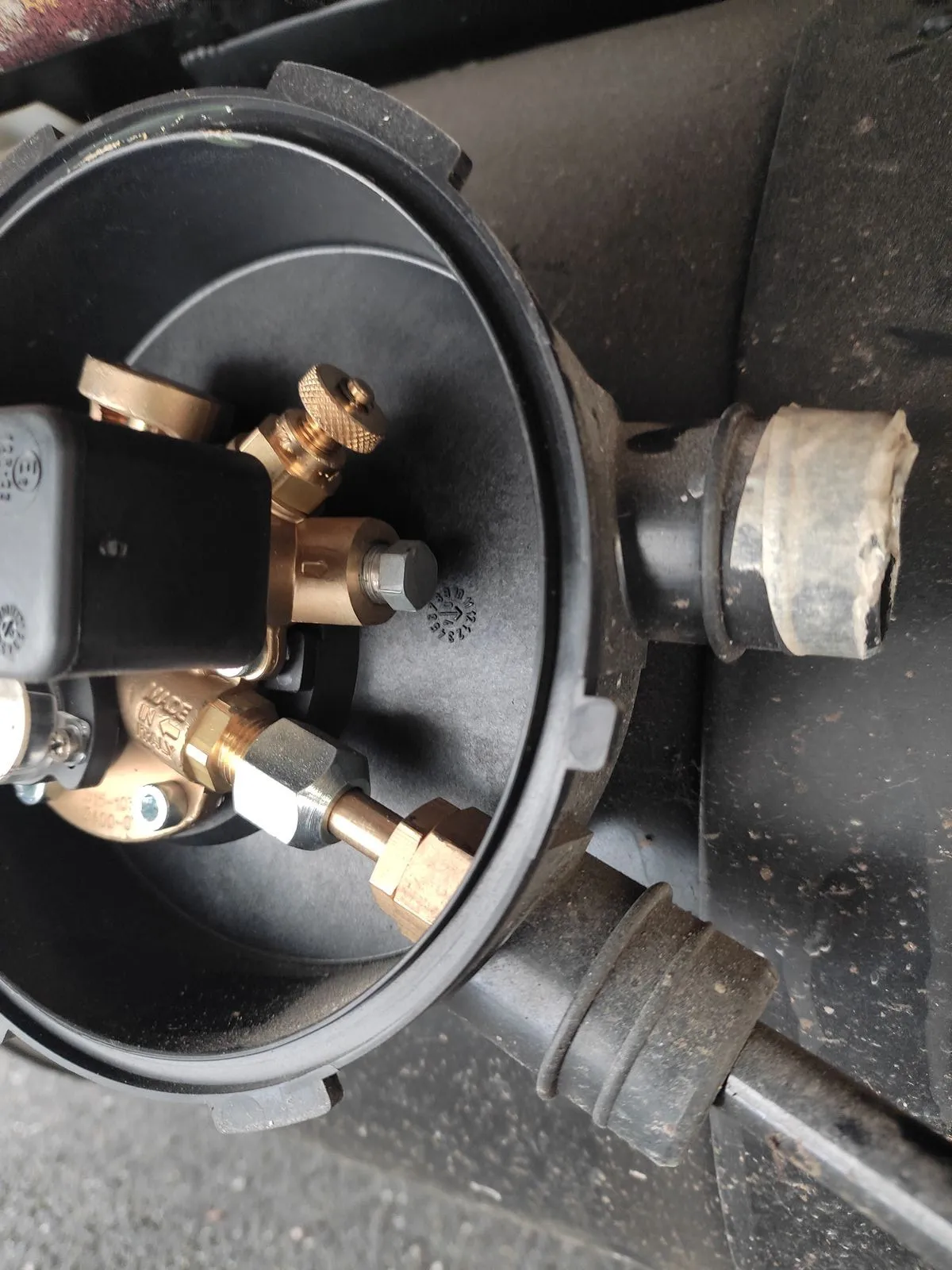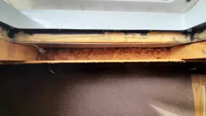 Unter dem Boden ist ein 90l LPG-Gastank, der 1000€ gekostet hat und nie in Benutzung war. Den bekäme man nur ab, wenn man innen alles rausholen würde, weil er unter der Innenverkleidung befestigt ist.