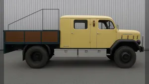 Aber vielleicht bin ich hier nicht der einzige, der schon mal etwas vor sich hin träumt. Jedoch sind die Kräne bei den alten Kisten nicht so smart wie heutzutage. Der Kran sitzt hinter dem Führerhaus, läßt sich aber nicht ganz falten. Also könnte er über den Kung nach hinten; das würde von der Höhe weniger passen (möchte unter 3,5m bleiben). Alternativ könnte er nach vorne über Führerhaus und Haube gehen. War im Original auch so, da Langholzlaster, aber wie das mit einem Wohnkoffer zusammen ausschaut, habe ich mich die KI noch nicht zu fragen getraut;-)